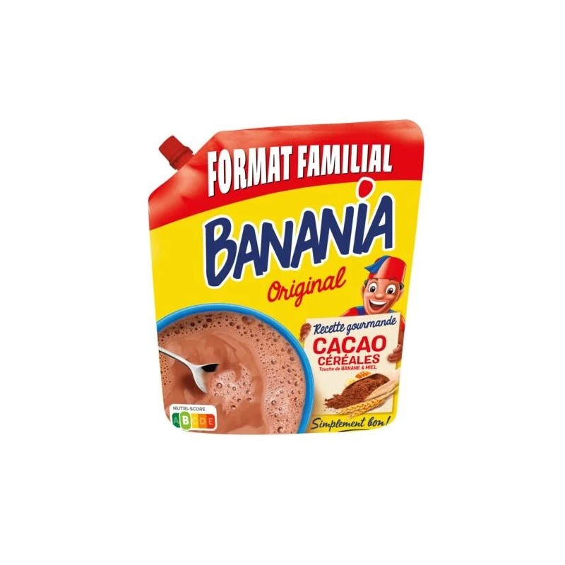 Ainutlaatuinen ja herkullinen resepti tasapainoiseen aamiaiseen: kaakaota, muroja ja ripaus banaania ja hunajaa Banania -suklaajauhe erottuu ainutlaatuisella ja herkullisella reseptillään: kaakao, muroja (ohra, mallastettu vehnä ja vehnä) sekä ripaus banaania ja hunajaa. Tämä omaperäisyys antaa sille hyvän, jäljittelemättömän keksimaun ja tarjoaa energiaa, jota voidaan käyttää vähitellen päivän mittaan. Ainesosat Sokeri, erittäin rasvaton kaakao 19 %, keksihiutaleet (vehnäjauho (VEHNÄ), OHRAA, mallastettu VEHNÄ) 12 %, kuivatut banaanihiutaleet 0,25 %, hunaja 0,25 %, aromi, suola. Ravintoarvot Ravintoarvot per 100 g Päivittäinen saantisuositus per 100 g* Energia (kcal) 169 kcal / 100 g 8 % fosforia 0 g / 100 g 30 % suolaa 0 g / 100 g 4 % rasvaa 3 g / 100 g 5 % sokereita 23 g / 100 g 26 % magnesiumia 0 g / 100 g 12 % energia (kJ) 707 kJ / 100 g 8 % ravintokuitua 1 g / 100 g - proteiinia 7 g / 100 g 16 % tyydyttynyttä rasvahappoa 2 g / 100 g 12 % hiilihydraatteja 25 g / 100 g 10 % *Keskivertoaikuisen saannin vertailuarvo (8400 kJ / 2000 kcal) Allergeenit Gluteeni Tämän tuotteen tiedot on sertifioinut ConsoTrust-AllergoBox. ConsoTrust-AllergoBox on allergioihin ja ruokavalioihin erikoistunut kumppani. Yhteistyökumppanimme päivittää näytettäviä tietoja säännöllisesti, jotta voit tunnistaa allergioihisi ja/tai ruokavalioihisi sopivat tuotteet. LUE LISÄÄ Paremmalla Nutriscorella NESQUIK-kaakaojauhe, suklaa 350 g pakkaus 8,74 € / Kilogramma NESQUIK-kaakaojauhe, suklaa 3,06 € NESQUIK vähäsokerinen suklaajauhe 650 g pakkaus 7,54 € / Kilogramma NESQUIK vähäsokerinen suklaajauhe 4,90 € BANANIA-kaakaojauhe 750 g pakkaus 6,17 € / Kilogramma BANANIA-kaakaojauhe 750 g 4,63 € NESQUIK extra-suklaanmakuinen jauhe, suklaa 600 g pakkaus 7,65 € / KG NESQUIK extra-suklaanmakuinen jauhe, suklaa 4,59 € Organic Prime Organic Prime CARREFOUR BIO vähärasvainen kaakaojauhe 500 g pakkaus 6,32 € / Kilogramma CARREFOUR BIO vähärasvainen kaakaojauhe Luomutuote Reilun kaupan tuote 500 g 10 % säästö 3,16 € NESQUIK-kaakaojauhe 500 g pakkaus 5,38 € / Kilogramma NESQUIK-suklaajauhe 2,69 € BANANIA muro-, banaani- ja kaakaosuklaajauhe 400 g laatikko 5,30 € / Kilogramma BANANIA muro-, banaani- ja kaakaosuklaajauhe 400 g 2,12 € Käyttöohjeet Säilytys Huoneenlämmössä Tuotteen ominaisuudet Nutri-score Nutri-scoren avulla voit yhdellä silmäyksellä tunnistaa tuotteen ravintoarvon. Voit näin tunnistaa suositeltavat tuotteet ja ne, joita kannattaa käyttää satunnaisesti tai pieniä määriä. Kunkin tuotteen luokittelemiseksi tutkimusryhmät ovat kehittäneet pisteytyksen, joka ottaa huomioon 100 grammaa tuotetta kohden seuraavat ravintoaineet: suositeltavat ravintoaineet: kuitu, proteiini, hedelmät ja vihannekset rajoitettavat ravintoaineet: energia, tyydyttyneet rasvahapot, sokerit, suola LUE LISÄÄ Nutri-score Ympäristöpisteytys Ympäristöpisteytys kertoo elintarvikkeiden ympäristövaikutukset. Se kehitettiin edistämään kestävämpää ruokavaliota. Laskentamenetelmä arvioi tuotteen elinkaaren jokaisen vaiheen (tuotanto, kuljetus, myynti myymälässä, ruoanlaitto, pakkausten kierrätys) vaikutusta ympäristön saastumiseen. Se ottaa huomioon erityisesti: tuotantomenetelmän kuljetuksen ainesosien maantieteellisen alkuperän pakkauksen kierrätettävyyden uhanalaisten lajien vaikutuksen. Tämän ympäristöpistemäärän laski Open Food Facts, ja se on nähtävissä osoitteessa https://openfoodfacts.org. LISÄTIETOJA Ympäristöpistemäärästä