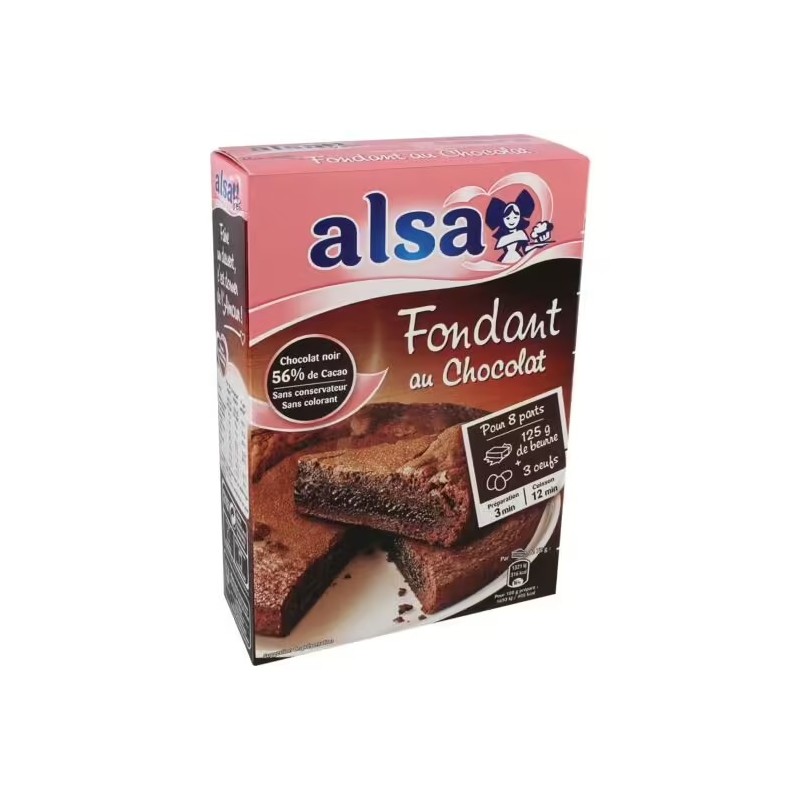 Alsa – Suklaafondant 320 g – Nopea ja helppo kakkumix Ainutlaatuisen koostumuksen ja maun omaava suklaafondant. Lisää vain 125 g voita ja 3 kananmunaa seokseen ja laita se uuniin ennen kuin ilahduttaa kaikkia makeannälänhaluisia. • Erittäin sulava koostumus uskomattoman herkulliselle kakulle; • Hyvä tumman suklaan maku; • Helppo, nopea ja varma kakku; • 8 hengelle; • Tumma suklaa 56 % kaakaopitoisuus; • Ei väriaineita, ei säilöntäaineita.