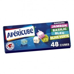 Kinkku-, basilika-, sinihomejuusto- ja vihreän oliivin apéricube: jokaiselle jotakin! Yksinkertaisia, kermaisia juustokuutioita värikkäisiin aperitiiveihin. Valmistettu Ranskassa Juran tehtaissamme ilman lisättyjä säilöntäaineita, väriaineita tai keinotekoisia aromeja.