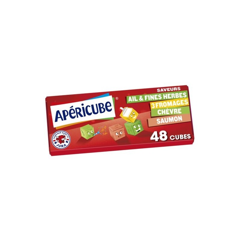 Apéricube-valkosipuli-yrttimausteella, kolmella juustolla, vuohen- ja saksanpähkinällä: jokaiselle löytyy jotakin! Pieniä, yksinkertaisia ja kermaisia juustokuutioita värikkäisiin aperitiiveihin! Ranskassa Juran tehtaissamme valmistettu aperitiivi ilman säilöntäaineita, väriaineita tai keinotekoisia aromeja.