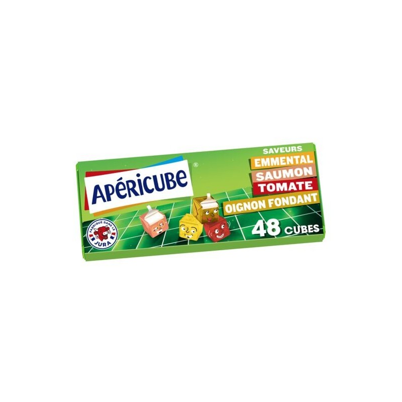 Emmental-apericubea, lohta, tomaattia ja sulavaa sipulia: jokaiselle jotakin! Yksinkertaisia ja kermaisia pieniä juustokuutioita värikkäisiin aperitiiveihin. Ranskassa Juran tehtaissamme valmistettu aperitiivi ilman lisättyjä säilöntäaineita, väriaineita tai keinotekoisia aromeja.