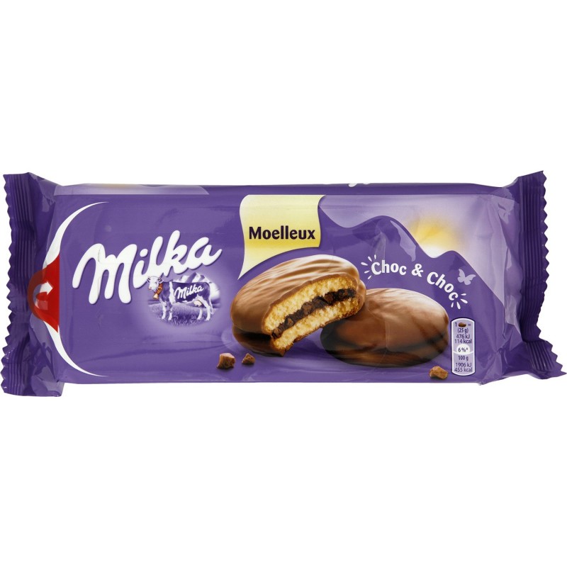 Koe sen sulava kaakaosydän Milka-suklaapaloilla kahden pehmeän kakun välissä, jotka kaikki on päällystetty murealla Milka-suklaalla, joka on valmistettu hyvästä Alppien maidosta.