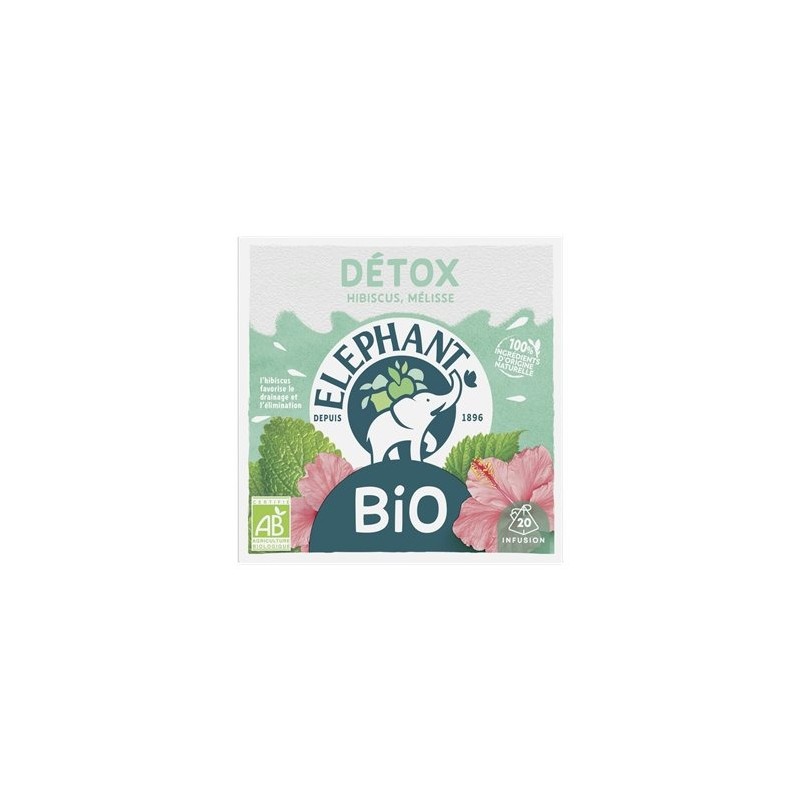 Ota elämä kevyesti ja nauti hibiskuksen hyödyistä, joka tunnetaan sen nesteyttävistä ja kuona-aineita poistavista ominaisuuksista Bio Détox -uutteen ja sen 20 Pyramid®-pussin ansiosta. Nauti sen kukkaisesta mausta ja sitruunamelissanlehtien hedelmäisemmästä mausta. Tämä hauduke tarjoaa sinulle kaikki sen maut ja hyödyt. Se on meidän tapamme tuoda iloa ja hyvää huumoria. Haudukkeemme salaisuus? 100 % sen ainesosista on luonnollista alkuperää. Juuri sinua varten Eléphant on valinnut huolellisesti luomuviljelykasveja tarjotakseen sinulle tämän maukkaan luomuvalikoiman. Ihanteellisen makuelämyksen saat antamalla Pyramid®-uutepussin hautua 4–5 minuuttia 200 ml:ssa kuumaa vettä ja nauttimalla. Eléphantin seikkailu alkoi vuonna 1896 ja jatkuu tänäkin päivänä. Tämä, niin pitkälle kuin elefantit muistavat, on melkoinen kokemus haudukkeiden luojalle... Hänen suurin ilonsa on aina ollut makunystyröidemme kiihottaminen! Elephant tekee luonnon kuuntelemisesta todellista voimaa, jota hän käyttää valitakseen parhaat kasvit, hedelmät ja mausteet ja valmistaakseen herkullisia, ainutlaatuisia haudukkeita, joista kaikki pitävät. Mutta älkää erehtykö, Elephant*, ranskalaisten suosikkimerkki, lisää anteliaisuudessaan myös ystävällisyyttä, yksinkertaisuutta, ripauksen huumoria ja omaperäisyyttä. Liity siis joukkoomme ja tutustu kaikkiin muihin herkullisiin resepteihin Organic-valikoimastamme: Elephant on juuri sinua varten valinnut luomuviljelystä peräisin olevia, maukkaita kasveja nautinnon hetkeen. *Elephant, hinta-laatusuhteen ja määrän johtaja Ranskassa — Nielsen vuonna 2022