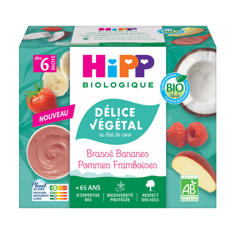 HIPP Banaani-omena-vadelma-sekoitettu vauvajälkiruoka