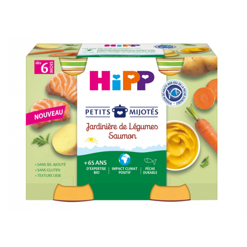 Vauvanruoat 6 kuukaudesta alkaen, kasvimaa, lohi, pienet muhennokset HIPP