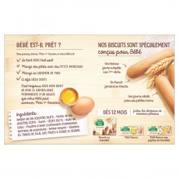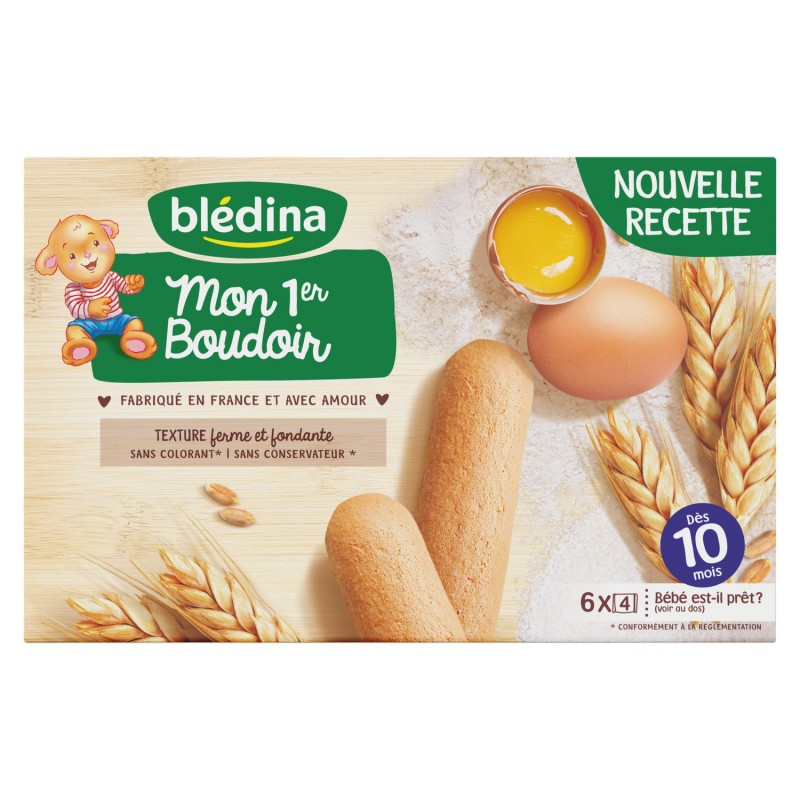 Ensimmäinen Boudoir-keksi, 10 kuukauden iästä alkaen, on erityisesti vauvoille suunniteltu keksi. Sen napakka ja suussa sulava koostumus sekä käytännöllinen muoto takaavat hyvän otteen. On aika uusille aistikokemuksille, täydellä mielenrauhalla. Onko vauvani valmis? Katso pakkaus.