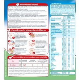 Ainesosat: Rasvaton MAITO, kasviöljyt (runsaasti öljyhappoa sisältävä auringonkukka-, kookos-, rapsi- ja auringonkukkaöljy), maltodekstriini, LAKTOOSI, galakto-oligosakkaridit, demineralisoitu heraproteiinipermeaatti, demineralisoitu makea heraproteiini, kalsium-, kalium- ja natriumsitraatit; frukto-oligosakkaridit, emulgointiaine: SOIJAlesitiini; kalsium- ja natriumfosfaatit; magnesium- ja natriumkloridit; vitamiinit: C, E, kalsiumpantotenaatti, niasiini, tiamiini, A, B6, riboflaviini, foolihappo, K, biotiini, D, B12; rauta-, sinkki- ja kuparisulfaatit; antioksidantit: tokoferolirikas uute, L-askorbyylipalmitaatti; Lactobacillus reuteri -viljelmä DSM 17938*, kaliumjodidi, natriumselenaatti. *Biogaia AB:n lisensoima
