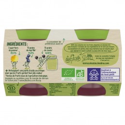 3 omenalohkoa* 81,0 % - 13 mustikkamarjaa* 15,0 % - 13 mustaherukkamarjaa* 4,00 % - Antioksidantti: 1 ripaus askorbiinihappoa. *Luomuviljeltyjä hedelmäsoseita.