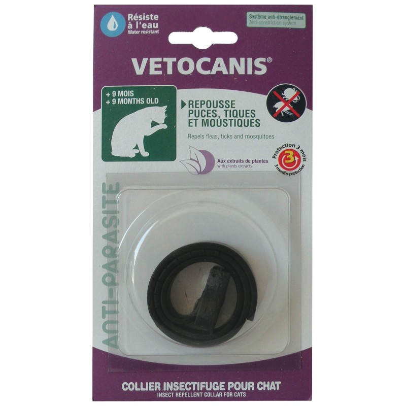 Tämä VETOCANIS kirppu- ja punkkikarkotepanta sopii yli 9 kuukauden ikäisille kissoille. Se torjuu kirppuja, punkkeja ja hyttysiä 3 kuukauden ajan. Panta on vedenkestävä ja sisältää luonnollisia laventelin ja yrtin uutteita, jotka tunnetaan karkotteista ominaisuuksistaan. Se vapauttaa miellyttävän tuoksun, joka ei vaikuta kissasi hajuaistiin, ja siinä on kuristumisenestojärjestelmä. Pannan pituus: 35 cm.