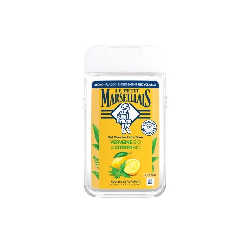 Le Petit Marseillais'n ensimmäinen luomusertifioitu tuotesarja! COSMOS ORGANIC, Ecocert Greenlifen sertifioima COSMOS-standardin mukaisesti, saatavilla osoitteessa http:\/\/ COSMOS.ecocert.com 98 % kaikista ainesosista on luonnollista alkuperää 10 % kaikista ainesosista on luomuviljelystä Le Petit Marseillais korjasi verbenaa Ranskassa ja sitruunoita Välimeren alueella sertifioitua luomu- ja energisoivaa suihkugeeliään varten. Tiedätkö mitä? Tämä pullo on täytettävä uudelleen sertifioidulla luomusuihkugeelillä, jossa on verbenaa ja sitruunaa. Ihollesi ja planeetalle 99 % biohajoava koostumus 100 % kierrätettävä pullo Täytettävä pullo pH-neutraali iholle Dermatologisesti testattu Sulfaatiton