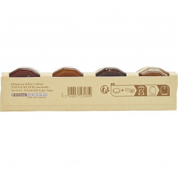 Dordogne-mansikkaekstrahillo: mansikat, ruokosokeri, hyytelöimisaine: pektiinit, tiivistetty sitruunamehu. 100 g valmista tuotetta: valmistettu 56 g:sta hedelmiä ja kokonaissokeripitoisuus: 56 g. Pays d'Oc -aprikoosiekstrahillo: aprikoosit, ruokosokeri, hyytelöimisaine: pektiinit, tiivistetty sitruunamehu. 100 g valmista tuotetta: valmistettu 55 g:sta hedelmiä ja kokonaissokeripitoisuus: 56 g. Korsikalainen appelsiini- ja klementiinihillo: ruokosokeri, appelsiinit 21 g, klementiinit 21 g, hyytelöimisaine: pektiinit, tiivistetty sitruunamehu. 100 g valmista tuotetta: valmistettu 42 g:sta hedelmiä ja kokonaissokeripitoisuus: 56 g. Provence-viikunaekstrahillo: viikunat, ruokosokeri, hyytelöimisaine: pektiinit, tiivistetty sitruunamehu. 100 g valmista tuotetta: valmistettu 53 g:sta hedelmiä ja kokonaissokeripitoisuus: 56 g.