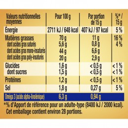 Ainesosat: kasviöljyt (auringonkukka, rypsi), valkoviinietikka, vesi, dijonsinappi (vesi, sinapinsiemenet, väkiviinaetikka, suola), vapaiden kanojen KANANMUNANkeltuainen 5,1 %, suola, sokeri, dekstriini, sakeuttamisaine: ksantaanikumi, aromit, värit: luteiini ja paprikauute.