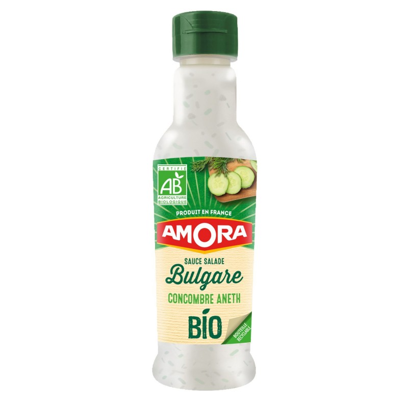 Amora-bulgarialainen salaattikastikkeemme on valmistettu 100 % kierrätettävässä pullossa, ja se on myös valmistettu luomuraaka-aineista.