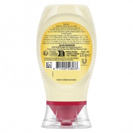 Ainesosat: kasviöljyt (auringonkukka, rapsi), valkoviinietikka, vesi, dijonsinappi (vesi, sinapinsiemenet, väkiviinaetikka, suola), vapaana kasvatettujen kanojen MUNANKELTUAINEN Ranskasta 5,1 %, suola, sokeri, dekstriini, aromit, sakeuttamisaine: ksantaanikumi, värit: luteiini ja paprikauute.
