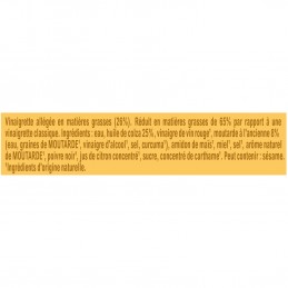 Ainesosat: vesi, rypsiöljy 25 %, punaviinietikka¹, vanhanaikainen SINAPPI 8 % (vesi, SINAPINSIEMENET¹, väkiviinaetikka¹, suola,