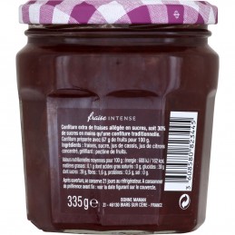 Ainesosat: Mansikat, sokeri, mustaherukkamehu, tiivistetty sitruunamehu, hyytelöimisaine: hedelmäpektiinit.