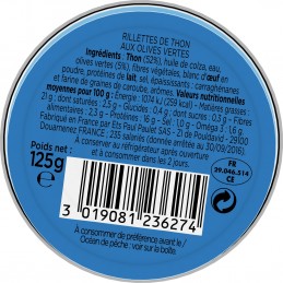 Herkullinen tonnikalan ja vihreiden oliivien makuinen gourmet-rillette, jonka koostumus on helppo levittää paahtoleivälle tai voileipiin, pieni, käytännöllinen ja uudelleensuljettava purkki yksin syötäväksi tai jaettavaksi.
