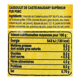 卡昂時尚之旅我們地區人才濟濟胃和牛蹄* 72%、水、胡蘿蔔* 3.4%、洋蔥* 2.7%、調味酒、鹽*、卡爾瓦多斯*、甜椒、香料和芳香植物萃取物、酸化劑:檸檬酸、大蒜。 *原產地法國。