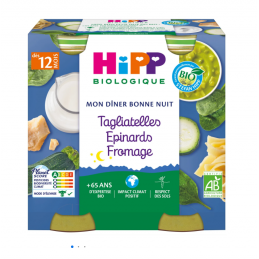 Barnematglass fra 12 måneder tagliatelle spinat ost Økologisk Min godnattmiddag HIPP de 2 krukkene på 250 g