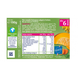 Babymatglass fra 6 måneder med karri-ris og gresskar, økologiske, P'tit-grønnsaker HIPP