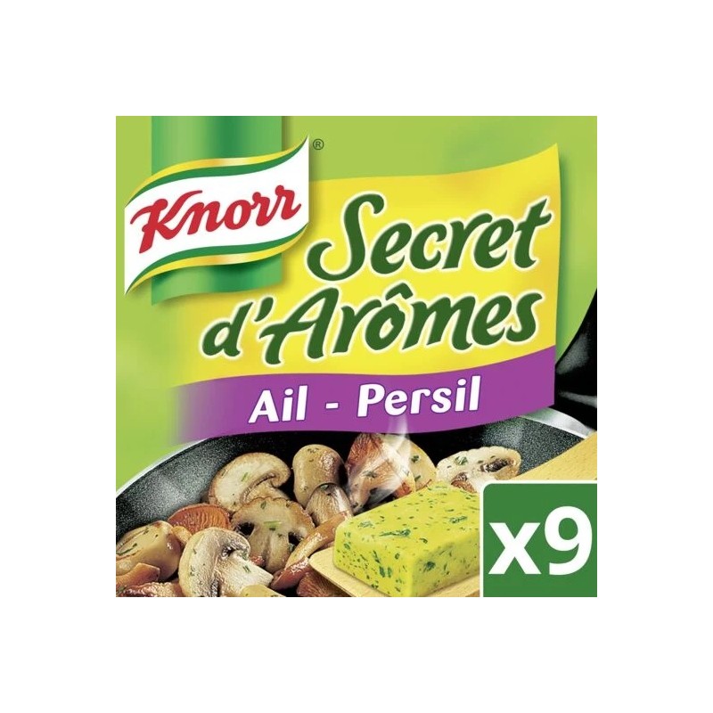 Knorr® Secret d'Arômes hvitløks- og persilleterninger vil raskt bli en fast bestanddel på kjøkkenet ditt! Dette krydderet er ideelt for å gi pasta, ris, retter med sauser eller til og med braiserte grønnsaker og kjøtt en vri. Det vil også forbedre kjøttsaften. Det er også uten konserveringsmidler! Oppdag også den deilige Knorr® Secret d'Arômes i 9-terningsformat. Rask og enkel å tilberede: Bland 1 buljongterning i 500 ml kokevann, eller tilsett den under kokingen av supper, wokretter eller gryteretter for å forbedre dem. Oppdag andre Knorr®-krafter og kokehjelpemidler som lar deg forbedre rettene, suppene og gryteretter. Hemmeligheten bak perfekt krydrede og mer smakfulle retter, de vil raskt bli din hemmelighet bak stadig mer smakfull matlaging. Oppdag spesielt Knorr® grønnsakskraft, Knorr® kyllingkraft og Knorr® oksekraft. Knorr® jobber mot en bærekraftig matfremtid for deg og planeten: Mer enn 95 % av våre landbruksingredienser er allerede bærekraftig dyrket. Vi ønsker nå å iverksette tiltak for gradvis å endre kostholdet vårt mot mer mangfold, mer plantebasert mat og mer grønnsaker. Gjennom våre produkter, oppskrifter og råd ønsker vi å hjelpe deg med å gjøre små, daglige endringer som utgjør hele forskjellen. La oss sammen bygge en bedre matfremtid!