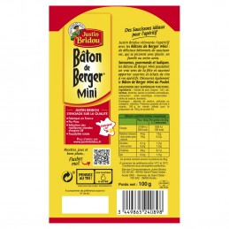 Justin Bridou gjenoppfinner aperitiffen med deilige, naturlige tørrpølser: Bâtons de Berger Mini. Smakfulle, gourmetaktige og morsomme Bâtons de Berger Mini har en ekte feiringsfølelse og vil bringe smil og latter til aperitiffene dine.