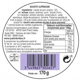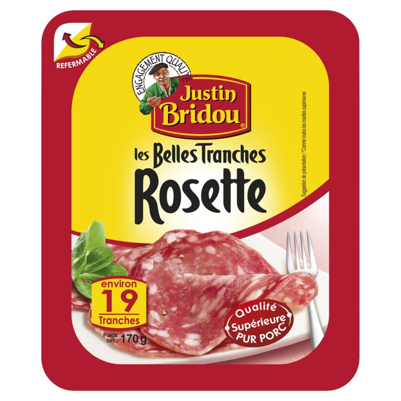 Unn deg den deilige Justin Bridou Rosette til raclette, burgere og alle måltidene dine med familie eller venner! For enda mer bekvemmelighet bevarer den gjenlukkbare emballasjen smaken og friskheten!
