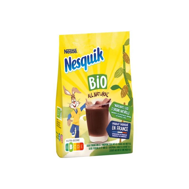 Oppdag NESQUIK BIO ALL NATURAL: den unike NESQUIK-smaken som barn elsker. Laget i Frankrike, oppskriften er laget av 100 % naturlige ingredienser fra økologisk landbruk og leveres i resirkulerbar papiremballasje! Denne papirposen helles i en beholder designet for dette formålet, som en NESQUIK-eske!