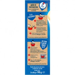 MOUSLINE Potetmos med melk kombinerer deilige poteter med sødmen fra helmelk for en deilig og deilig potetmos. Produsert i Picardie med nøye utvalgte franske poteter. En glatt potetmos, uten kunstige fargestoffer, konserveringsmidler eller smakstilsetninger. Resirkulerbar papp. Én eske inneholder tre poser til to personer.
