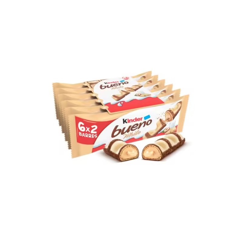 Har du allerede prøvd Kinder Bueno? Men har du noen gang blitt fristet av Kinder Bueno White? Unn deg selv en smak av den unike hasselnøttsmak, deilige hvite sjokoladen og den glatte, men sprø teksturen.