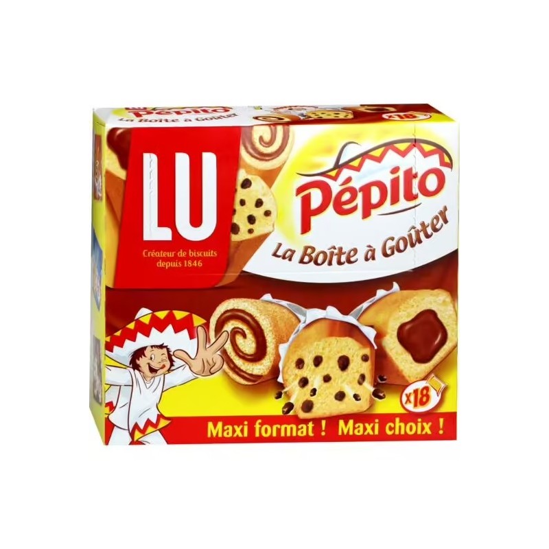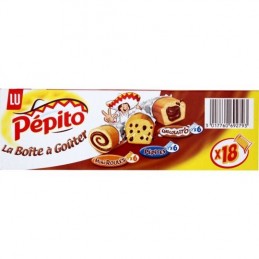 Utvalg av myke kaker: Pépito chocolat'o: myk kake fylt med sjokolade: HVETEMEL 20,6 %, glukose-fruktosesirup, palmeolje, sukker, EGG 11,4 %, mørk sjokolade 6,1 % (kakaomasse, sukker, fettredusert kakaopulver, emulgator (SOYALECITIN), aroma), stabilisator (glyserol), skummetMELKpulver, HVETESTIVELSE, helMELKpulver, hevemiddel (dinatriumdifosfat, natriumhydrogenkarbonat), salt, fortykningsmiddel (xantangummi), glukosesirup, emulgatorer (E472b, E475), aromaer. Pépito pépites: kake fylt med sjokoladebiter: HVETEmel 23,6 %, sjokoladebiter 18,6 % (kakaomasse, sukker, emulgator (SOYalecitin))) palmeolje, EGG 13,1 %, sukker, glukose-fruktosesirup, stabilisator (glyserol), hevemiddel (dinatriumdifosfat, natriumhydrogenkarbonat), salt, fortykningsmiddel (xantangummi), glukosesirup, emulgatorer (E472b, E475), aromaer, skummetMELKpulver. Pépito minirundstykker: mini sjokoladefylt svampekake: glukose-fruktosesirup, HVETEmel 17,5 %, EGG 15,9 %, sukker, mørk sjokolade 10,5 % [kakaomasse, sukker, fettredusert kakaopulver, emulgator (SOYalecitin), aroma], vegetabilske oljer (palme, raps), mysepulver (fra MELK), stabilisator (glyserol), helMELKpulver, HVETEkli, fortykningsmidler (E1414, xantangummi), konserveringsmiddel (kaliumsorbat), emulgator (E471), salt, hevemiddel (dinatriumdifosfat, natriumhydrogenkarbonat), surhetsregulerende middel (sitronsyre), aromaer, antioksidant (rosmarinekstrakt). Kan inneholde HASSELNØTTER.