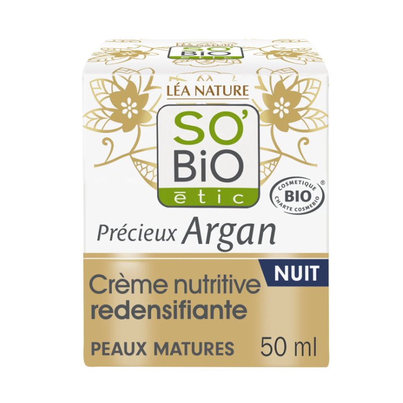 Nærende ansiktskrem for moden hud Precious Night Organic Argan SO'BIO ETIC