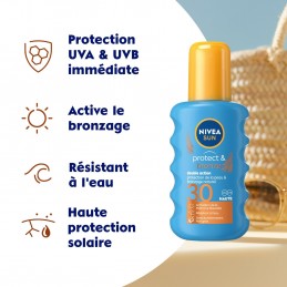 Tan Activating Sun Spray SPF 30 tilbyr dobbel virkning: umiddelbar UVA/UVB-beskyttelse for huden din og for tidlig aldring, samt en naturlig brunfarge takket være det patenterte pro-melanin-ekstraktet. Den ikke-fettete formelen er vannavstøtende og fri for selvbruner. Flasken er 95 % resirkulert (unntatt kork og pumpe). Påfør rikelig og jevnt. Gjenta ofte.
