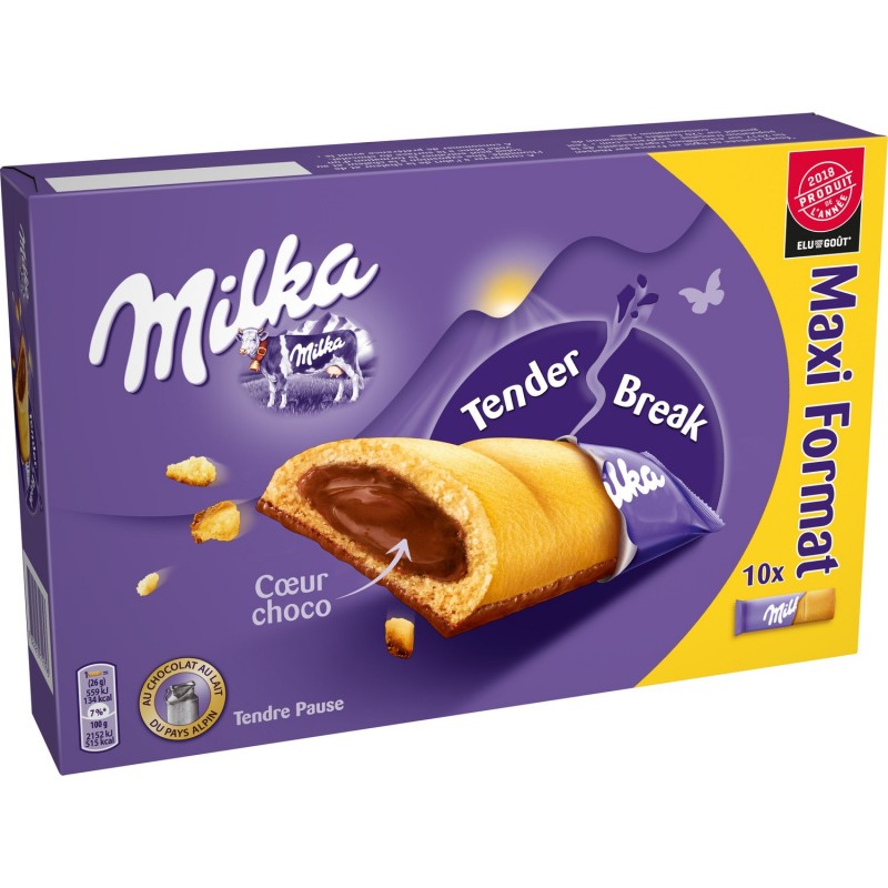 Milka Tender Break sjokoladehjertebar er en deilig shortbread-kjeks med en smeltende sjokolade-hasselnøttsmak i midten og et overtrekk av mør Milka-sjokolade laget med god melk fra Alpelandet.