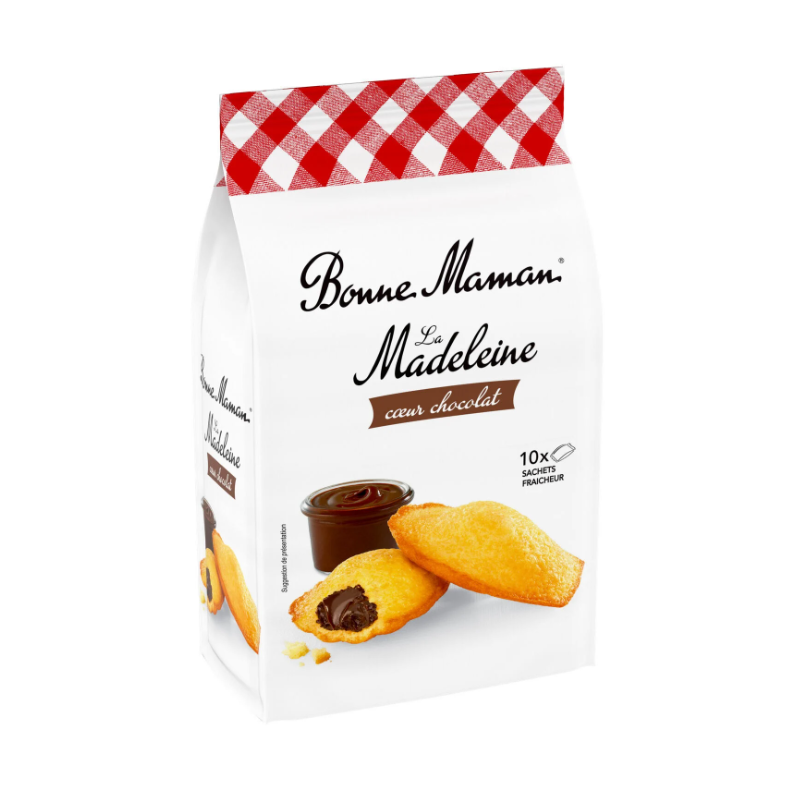 Takket være sin enestående ekspertise og kvaliteten på ingrediensene, tilbyr Bonne Maman deg det beste, for din største nytelse, ganske enkelt. Møre madeleinekaker kombinert med en kremet sjokoladekjerne for å forføre gourmeter. For å bevare all smaken og mykheten er hver Bonne Maman Madeleine nøye pakket i sin egen lille friskhetspose.