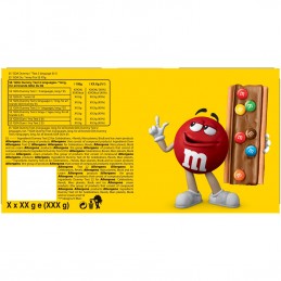 Kjeks dekket med melkesjokolade (20 %) og M&M'S minis (11 %) (overtrukket melkesjokolade).