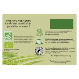 Oppdag Lipton® økologisk sitrongrønn te i 20 innpakkede teposer. En økologisk og ansvarlig te, med blader fra sertifiserte økologiske plantasjer som ikke bruker plantevernmidler, kombinert med økologisk sitronskall for en frisk og fruktig smak. De 100 % naturlige ingrediensene er nøye utvalgt for å gi en autentisk smak og en deilig aroma som gjør hver slurk til en solstråle. Tebladene i denne esken er plukket fra Rainforest Alliance-sertifiserte plantasjer og nøye utvalgt for å tilby deg te av høy kvalitet. De har deretter blitt nøye pakket i musselinposer for å blomstre fritt og frigjøre alle smakene sine. Ingrediensene som utgjør denne teen er fra økologisk landbruk. For en perfekt smaksopplevelse, la den grønne teen trekke i 2 minutter i 200 ml vann ved 90 °C. Lipton® er forpliktet til bærekraftig utvikling med sin Rainforest Alliance-sertifisering. All Lipton®-te kommer fra Rainforest Alliance-sertifiserte plantasjer for te som er snillere mot bønder og miljøet. Lipton® er forpliktet til å støtte småbønder gjennom sin bærekraftspolicy. Vår historie: Da Sir Thomas Lipton grunnla selskapet sitt på slutten av 1800-tallet, kjøpte han sin første teplantasje i Ceylon (Sri Lanka). Mer enn hundre år senere eier Lipton tusenvis av hektar med kvalitetsteplantasjer i Øst-Afrika. Lipton, som er bygget på over et århundres erfaring med å dyrke og blande te, har beholdt Sir Thomas' kjærlighet til innovasjon og fortreffelighet. Lipton er basert på de sterke verdiene inspirert av grunnleggeren: naturlighet, optimisme og dynamikk. I denne ånden av oppfinnsomhet, forskning og oppdagelse hjelper Lipton folk med å oppdage fordelene med brygget te, enten svart eller grønn. Lipton er et moderne merke som beveger seg bort fra de tradisjonelle kodene for "tetid", og har basert sin suksess på utviklingen av en "smaksopplevelse" basert på øyeblikk med delt glede, oppdagelse og hygge. All Lipton-te kommer fra plantasjer verifisert av Rainforest Alliance for en te som er mer respektfull for både bønder og miljøet.