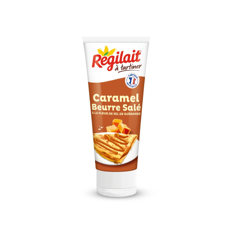 Gi etter for den uimotståelige Régilait Salted Butter Caramel. Supert til desserter, i yoghurt, på brioche eller pannekaker. Alle elsker det. 300 g tube med Régilait Salted Butter Caramel er tilgjengelig i dagligvarehyllen.