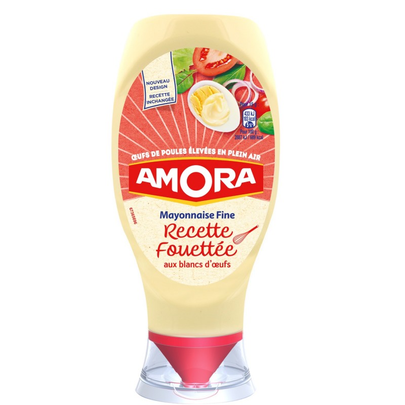Beskrivelse Amora Dijon-majones er fri for konserveringsmidler og fargestoffer og er laget med kvalitetsingredienser: frittgående egg og deilig Dijon-sennep. Korken holder seg alltid ren. Denne naturlige majonesen er så god fordi den er laget med kvalitetsingredienser: frittgående eggeplommer og deilig Amora Dijon-sennep. I tillegg er Amora Dijon-majonesserien, som er tilgjengelig i krukker, glass, tuber og strykeflasker, uten konserveringsmidler og sulfitt! Amora har vært en stor favoritt blant franskmennene siden 1919, og er anerkjent og verdsatt for sin ekspertise og kvaliteten på produktene sine. Merket fortsetter å glede kundene hvert år med nye, autentiske og originale produkter. Lag enkle og deilige oppskrifter og gjenoppfinn rettene dine, og gi dem enda mer smak med Amora. På kanten av tallerkenen, i smørbrødene dine eller varme, vil Amora-produktene krydre alle rettene dine og forbedre smakene i matlagingen din. Nyt gleden av å dele deilige måltider med familie eller venner. Oppdag alle tipsene og de enkle og deilige Amora-oppskriftene: du vil glede både store og små, til glede for hele familien! Ingredienser / Sammensetning Ingredienser Ingredienser: rapsolje, vann, frittgående EGG 9 % (inkludert EGGhvite 4 %), spriteddik, salt, sukker, modifisert maisstivelse, konsentrert sitronsaft, aroma, antioksidant: E385, paprikaekstrakt. Næringsverdier Næringsverdier per 100 g Energiverdi (kJ) 3000 kJ / 100 g Energiverdi (kcal) 720 kcal / 100 g Fett 79 g / 100 g Mettet fett 6 g / 100 g Karbohydrater 1,5 g / 100 g Sukkerarter 1,5 g / 100 g Protein 1 g / 100 g Salt 1,5 g / 100 g Næringsverdier per 15 g Daglig inntak per 15 g* Energiverdi (kJ) 450 kJ / 15 g 5 % Energiverdi (kcal) 110 kcal / 15 g 6 % Fett 12 g / 15 g 17 % Mettet fett 0,9 g / 15 g 5 % Karbohydrater 0,5 g / 15 g 1 % Sukkerarter 0,5 g / 15 g 1 % Protein 0,5 g / 15 g 1 % salt 0,22 g / 15 g 4 % *Referanseinntak for en gjennomsnittlig voksen (8400 kj / 2000 kcal) Allergener egg Fordeler og påstander Produktfordeler Amora Mayonnaise er laget med frittgående egg, Naturlig majonesoppskrift med eggehviter, Balansert smak og fin tekstur, Korken er designet for alltid å holde seg ren, Amora, et fransk merke siden… se mer Forbrukerfordeler Amora Dijon Mayonnaise er uten konserveringsmidler og er laget med kvalitetsingredienser: frittgående egg og deilig Dijon-sennep. Korken holder seg alltid ren. Råd og forbrukerinformasjon Oppbevaring Oppbevares kjølig etter åpning. Operatørkontakt / Forbrukerservice Forbrukerservice: Amora Consumer Relations Unilever France 20 rue des Deux Gares 92842 Rueil-Malmaison Cedex. Driftsavdeling: Unilever Forbrukerrelasjoner\n09 69 32 00 90 (samtale uten premiumpris)\ nwww.amora.fr \nUnilever Frankrike\n92 842 Rueil-Malmaison Cedex Produktegenskaper 18 100 Innit-poengsum Tilpass poengsummen din For å tilpasse innit-poengsummene dine, logg inn med brukerkontoen din. LOGG INN Næringsinnhold per 100 g Energi 720 kcal Protein 1 g Fett 79 g Mettede fettsyrer 6 g Sukkerarter 1,5 g Salt 1,5 g Kostfiber NC 3 tilsetningsstoffer i dette produktet 0 bør unngås 0 anbefales ikke 1 tålelig (forsiktig for visse populasjoner) 2 akseptabelt Informasjon Økologisk etikett Ikke-økologisk produkt Ikke-økologisk produkt Ikke-økologisk produkt LÆR MER OM INNIT © Kilde Innit Nutri-score Nutri-score lar deg identifisere produktets ernæringsmessige kvalitet med et raskt blikk. Dermed kan du identifisere produktene du foretrekker og de som bør konsumeres av og til eller i små mengder. For å klassifisere hvert produkt har forskerteam utviklet en poengsum som tar hensyn til, per 100 gram produkt, innholdet av: i næringsstoffer og matvarer som bør favoriseres: fiber, proteiner, frukt og grønnsaker i næringsstoffer som bør begrenses: energi, mettede fettsyrer, sukker, salt LÆR MER