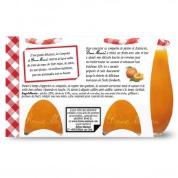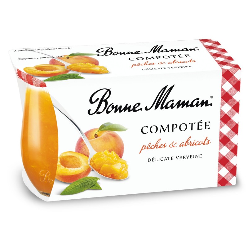 Bonne Mamans kompotter er delikate og overraskende oppfinnsomme og blander herlig frukt fra frukthagen, røde bær, krydder og blomsternoter. Bonne Maman tilbereder dem akkurat som hjemme, og velger fruktene sine nøye og tilfører et lite gourmetpreg for å avdekke den fulle smaken. Deretter koker hun dem forsiktig til hun får delikate biter av smeltet frukt.