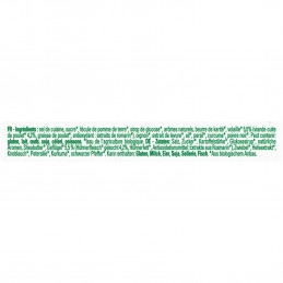 Ingredienser: Matlagingssalt, sukker*, potetstivelse*, glukosesirup*, naturlige aromaer, sheasmør*, fjærkre* 5,5 % (kokt kyllingkjøtt* 4,2 %, kyllingfett*, antioksidant: rosmarinekstrakter*), løk*, gjærekstrakt*, hvitløk*, persille*, gurkemeie*, sort pepper*. *Fra økologisk landbruk. Kan inneholde: GLUTEN, MELK, EGG, SOYA, SELLERI, FISK.