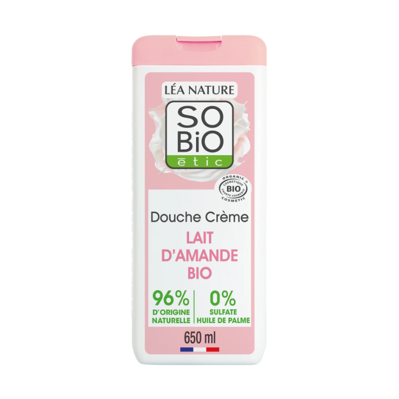 SO'BiO étic dusjkrem med økologisk mandelmelk fukter og mykgjør alle hudtyper intensivt, selv den mest delikate, takket være den sulfatfrie* formelen.