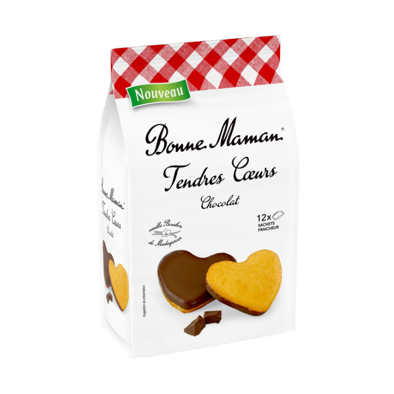 Møre hjertekaker dekket med sjokolade uten palmeolje BONNE MAMAN