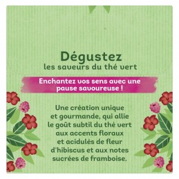 Nyt sansene dine med en deilig pause, takket være friskheten og naturen til Lipton® Hibiscus Flower & Raspberry Green Tea. En unik og gourmetkreasjon som kombinerer den subtile smaken av grønn te med de blomsteraktige og syrlige aksentene av hibiskusblomst og de søte tonene av bringebær. Denne grønne teen inneholder 100 % ingredienser av naturlig opprinnelse. Disse ingrediensene er nøye utvalgt for å gi en autentisk smak og en duft som gjør hver slurk til en nytelse. La solskinnet komme inn i koppen din ... Tilberedt med unge teblader for en lett og fruktig smak, er vår grønne teen rett og slett deilig. Kombinert med hibiskusblomst og bringebær, den perfekte muligheten til å nyte et syrlig øyeblikk med avslapning. De grønne tebladene i denne esken er plukket fra Rainforest Alliance-sertifiserte plantasjer og nøye utvalgt for å tilby deg te av høy kvalitet. De har deretter blitt nøye pakket i Pyramid®-poser. Teposen utviklet av Lipton® lar alle ingrediensene uttrykke sine naturlige aromaer sjenerøst, slik at du kan nyte alle gledene ved teen. For en perfekt smaksopplevelse, la teposen trekke i 2 minutter i 200 ml vann ved 90 °C. Lipton® er forpliktet til bærekraftig utvikling med sin Rainforest Alliance-sertifisering. All Lipton®-te kommer fra Rainforest Alliance-sertifiserte plantasjer for en te som er mer respektfull overfor bønder og miljøet. Lipton® er forpliktet til å støtte småbønder gjennom sin bærekraftige politikk. Vår historie: Da Sir Thomas Lipton grunnla selskapet sitt på slutten av 1800-tallet, kjøpte han sin første teplantasje i Ceylon (Sri Lanka). Mer enn hundre år senere eier Lipton tusenvis av hektar med kvalitetsteplantasjer i Øst-Afrika. Bygget på mer enn et århundre med erfaring med å dyrke og blande te, har Lipton beholdt Sir Thomas' kjærlighet til innovasjon og fortreffelighet. Lipton er basert på solide verdier inspirert av grunnleggeren: naturlighet, optimisme og dynamikk. I denne ånden av oppfinnsomhet, forskning og oppdagelse hjelper Lipton folk med å oppdage fordelene med brygget te, enten svart eller grønn. Lipton er et moderne merke som beveger seg bort fra de tradisjonelle kodene for «tetid», og har basert suksessen sin på utviklingen av en «smaksopplevelse» basert på øyeblikk med delt glede, oppdagelse og hygge. All Lipton-te kommer fra Rainforest Alliance-sertifiserte plantasjer for en te som er mer respektfull for både bønder og miljøet.