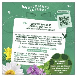 Med Light Digestion-teposen og de 20 Pyramid®-teposene kan du ta livet med ro ved å nyte den forfriskende smaken av mynteblad, kjent for sine fordøyelsesegenskaper, kombinert med blomsternotene av kamille og de deilige treaktige notene av rooibos. Ved å velge Rainforest Alliance-sertifiserte urter ønsker Elephant å ta vare på planeten og hver dag bidra til en bedre verden for mennesker og natur. Det er vår måte å tilføre glede og godt humør. Hemmeligheten bak teposen vår? 100 % av ingrediensene er av naturlig opprinnelse. Bare for deg har Elephant nøye utvalgt planter for å tilby deg denne Well-Being-serien. For en ideell smaksopplevelse, la Pyramid®-teposen trekke i 4–5 minutter i 200 ml varmt vann og nyt. Elephant-eventyret startet i 1896 og fortsetter i dag. Noe som, så vidt elefanter kan huske, er en spesiell opplevelse for en teskaper... Hans største glede har siden alltid vært å begeistre smaksløkene våre! Elephant gjør det å lytte til naturen til en ekte styrke, som han bruker til å velge de beste plantene og lage deilige, unike infusjoner som alle setter pris på. Men ta ikke feil, Elephant*, franskmennenes favorittmerke, tilfører i sin store generøsitet også vennlighet, enkelhet, et snev av humor og et snev av originalitet. Så bli med i stammen og oppdag alle de andre deilige oppskriftene i vårt Well-Being-sortiment. *Elephant, verdi- og volumleder i Frankrike — Nielsen år 2022