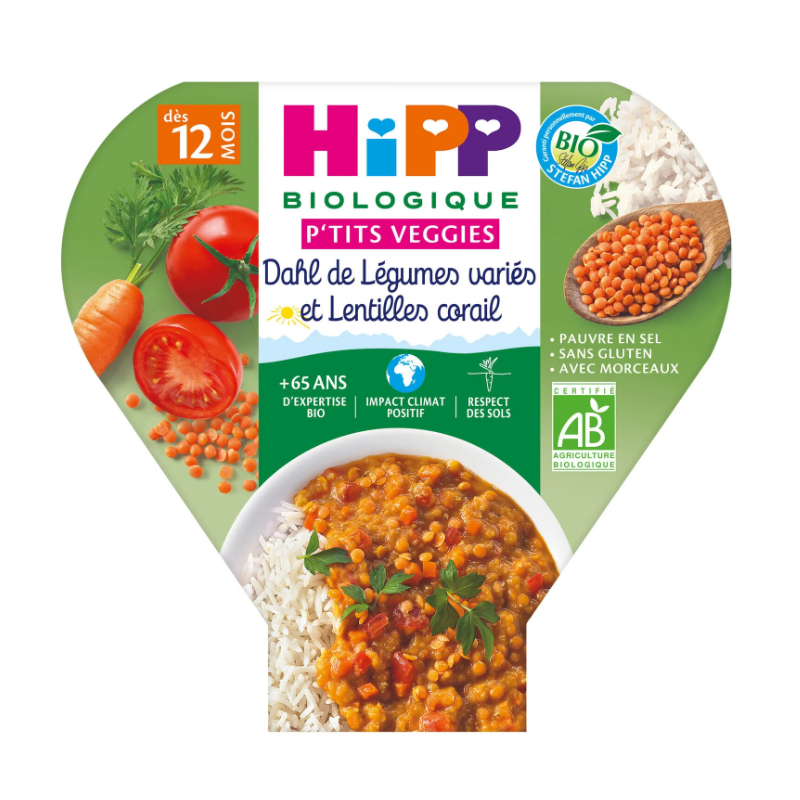 Babyrätt från 12 månader dahl med blandade grönsaker och koralllinser Ekologiska P'tits-grönsaker HIPP