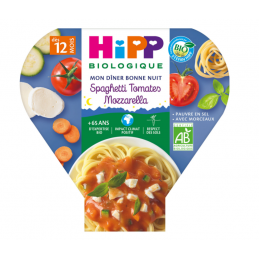 Babymåltid från 12 månader spaghetti tomater mozzarella Ekologisk Min godnattsmiddag HIPP