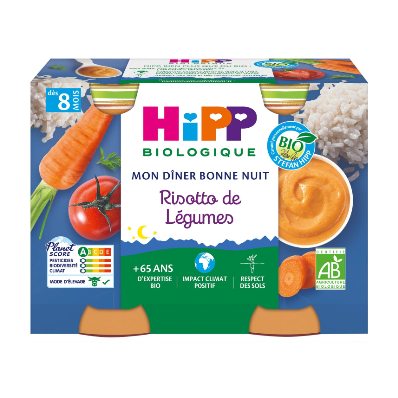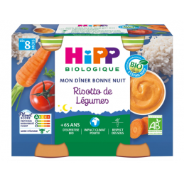 Ekologisk produkt Barnmatsburkar från 8 månader Ekologisk grönsaksrisotto Min godnattsmiddag HIPP