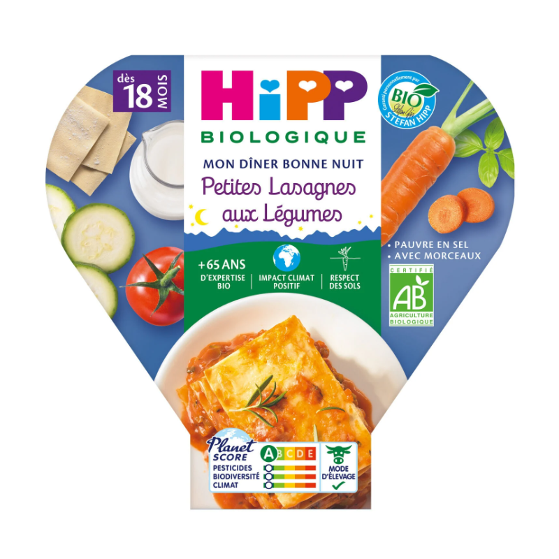 Babyrätt från 18 månader: små ekologiska grönsakslasagner Min HIPP godnattmiddag
