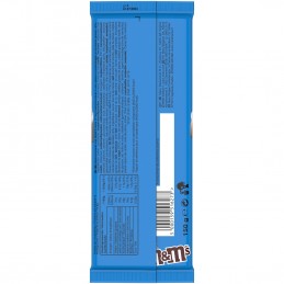 Mjölkchoklad med M&M’s minis (11 %) (mjölkchoklad täckt med ett färgat sockerskal) och flingor (4 %).